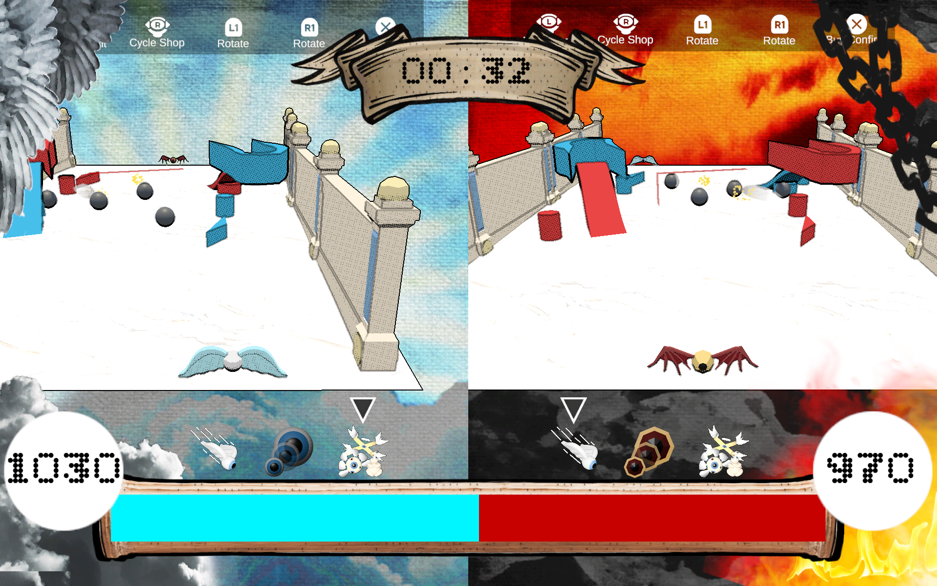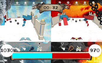 Choose your faction, Heaven or Hell, and battle for the souls of the dead in a pong/pinball style competition. While the balls roll, utilize your faction's powers to increase your defenses.